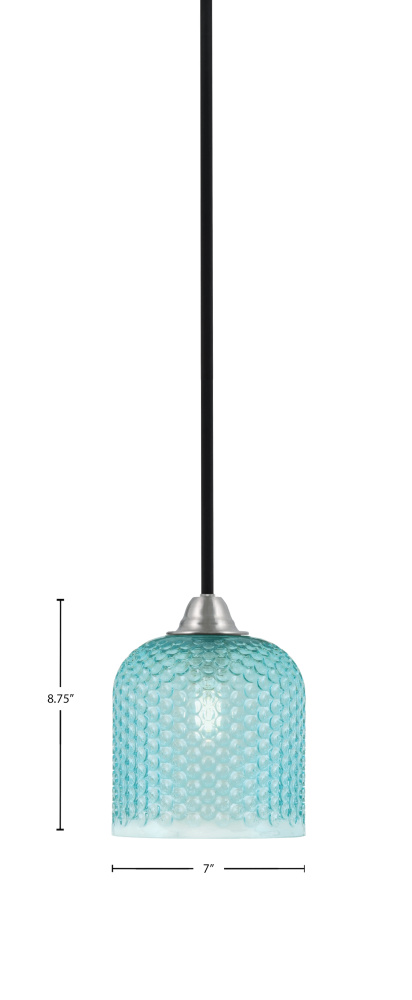Paramount Stem Hung Mini Pendant Shown In Matte Black & Brushed Nickel Finish With 7 Turquoise Textured Glass