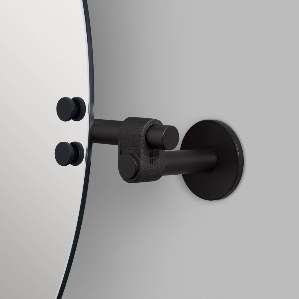 A mirror featuring our signature rough-cast knuckle, hand polished metal bar and circular mirror. The mirror can be tilted by hand to adjust to your height. Thanks to the casting process, each knuckle is one-of-a-kind. Suitable for all interior spaces, including bathrooms.
