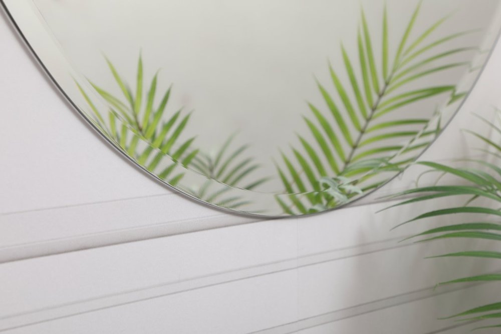 Classic and eye-catching, this “Metropolitan Collection” perfectly round, beveled-edge clear mirror offers you a timeless and elegant look to accent any room or hallway in your home or office. Expertly cut, this mirror will add light and beauty to adorn any wall wonderfully. Great for the bathroom or wherever you choose to place it!
