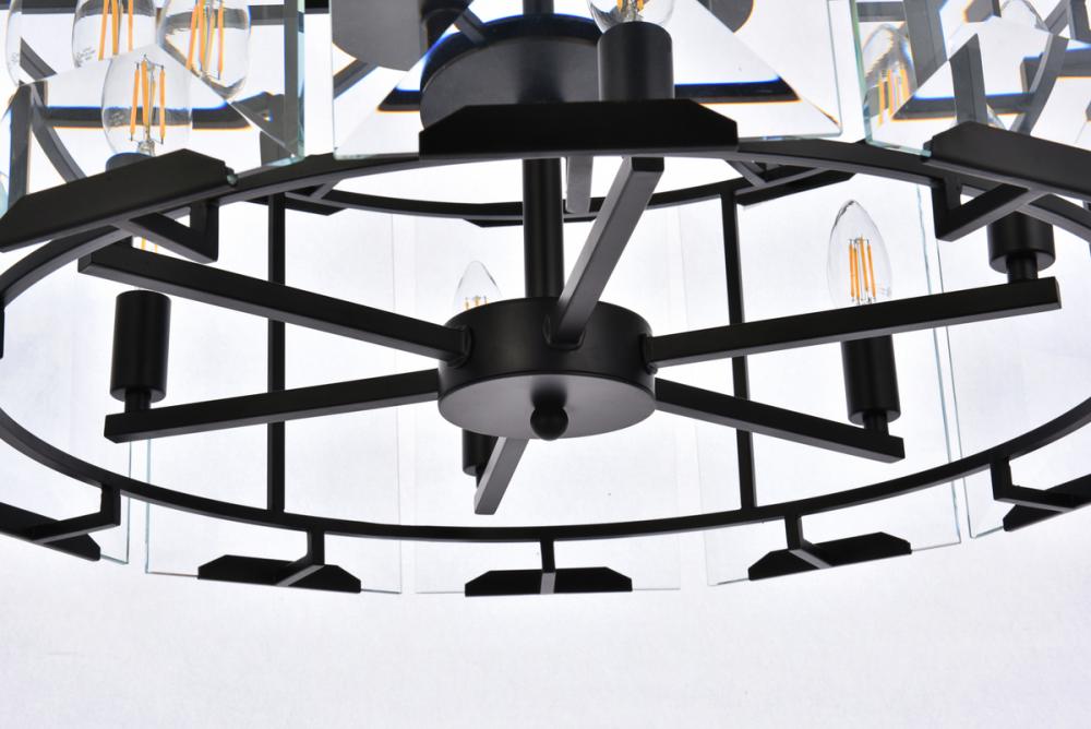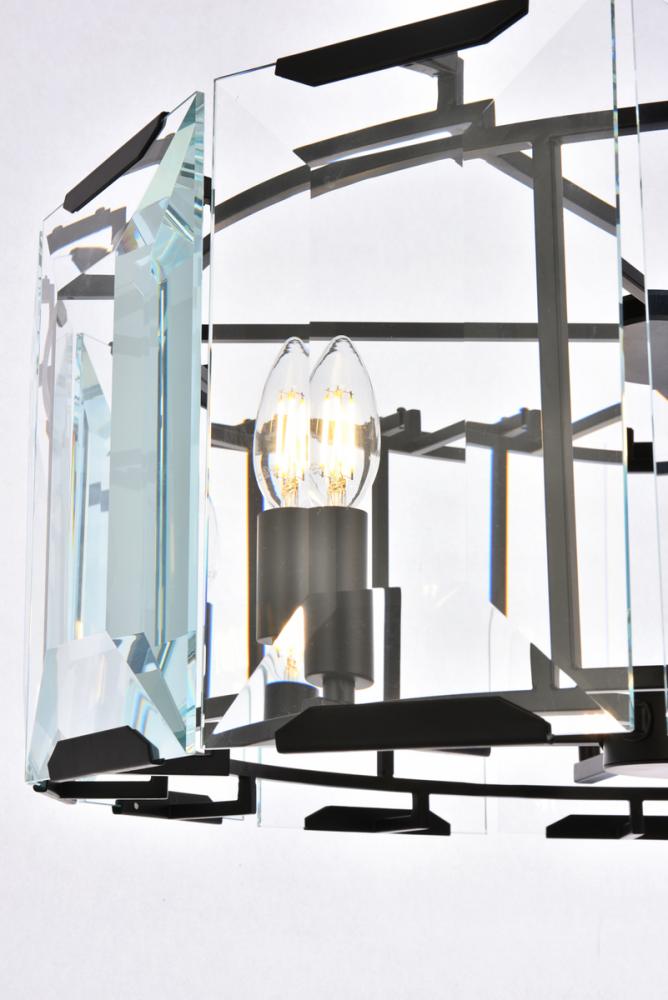 An eternity of reflection with exotic flair, Monaco chandeliers will bring illumination to your kitchen, office, or dining room, Brilliant emerald-cut glass panes capture and magnify the soft gleam of exposed bulbs. Rectangular or circular steel frames available in flat-black or golden-iron finishes give these lamps distinguished appeal.