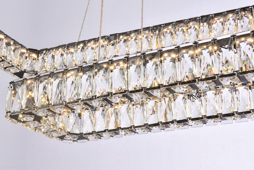 Diamonds are a girl’s best friend, and sparkling Monroe collection hanging fixtures take Marilyn’s famous lines to heart … for women and men alike. A minimal stainless-steel frame becomes dazzling when it is covered entirely with rectangular and square spectacularly faceted clear crystals. The oblong design hangs from almost invisible wires with brilliant integrated LED shining unseen from within. Stunning when placed in a dining room, kitchen, living room, or bedroom.