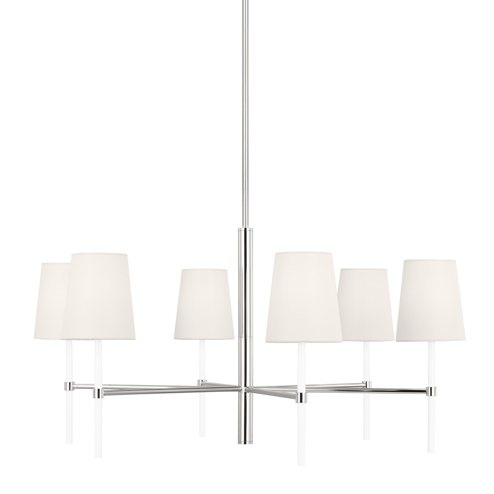 The Monroe medium chandelier is inspired by graphic enameled metal jewelry and decorative accessories from kate spade with a nod to late 50s atomic era colorful designs. Monroe exhibits clean lighting profiles and dressed them up with painted sections and metal accents.