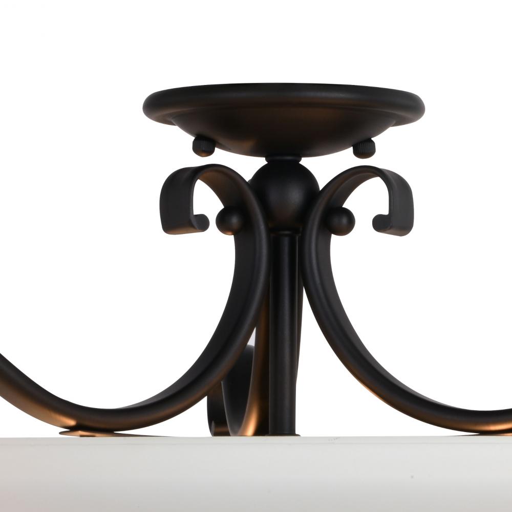 The soft traditional lines of the Monrovia collection allow you to combine styles within your home without compromising on design. The oil rubbed bronze and etched white glass add a certain level of sophistication and elegance that is rare to achieve. Update your look with a hint of class. This fixture is part of a collection with coordinating pieces to decorate any room in the house. This versatile fixture can be installed two ways; mount as a semi-flush mount ceiling fixture or use the chain to mount as a pendant.