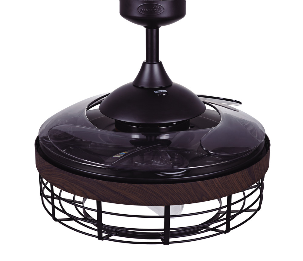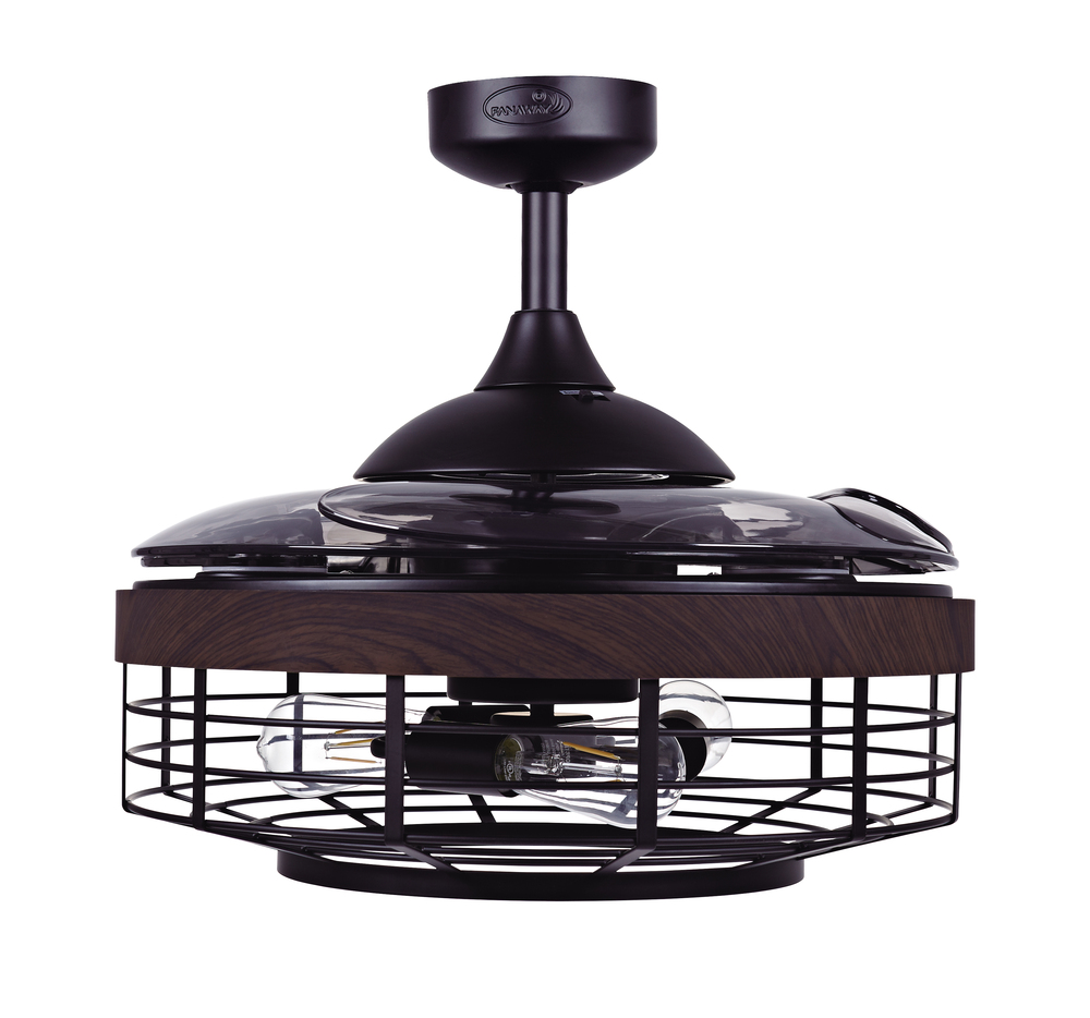 The Australian Original FANAWAY Montclair Black with Koa Trim and Smoke Blades is an advanced ceiling fan with unique aesthetics and energy efficient design. Switched off, the traditionally intrusive fan blades automatically retract and conceal, transforming the unit into a modern industrial pendant. It creates open space in the room environment, accumulates less dust, and is unobtrusive and versatile to visually integrate into all rooms of you home. The fan comes with 3 dimmable LED vintage bulbs, 3 speed remote control, winter/summer mode and wall mount for you to personalize your experience. The star of this Fanaway design is the light kit which has a hand-crafted industrial steel cage with a hand-painted koa wood trim. The 3 dimmable vintages LED bulbs completes the rustic modern feel and is sure to add that designer look to any room in your home. Additional downrods lengths sold separately: 12", 24" and 36" - 51106012, 51106018, 51106024, 51106036. US Patent 8317470, US Patent 8807938, US Patent 8790085, US Patent 9255584, US Patent 8851841.Features:Set includes: One (1) ceiling fan with remote control. Material: Metal (fan housing) and PC - Polycarbonate (blades). Finish: Black with Koa Trim and Smoke Blades. Ceiling fan dimensions: 17.72 inches high x 48 inches wide x 48 inches deep. Blade dimensions: 17.7 inches length x 4.1 inches width; Blade color: Smoke. Summer/Winter mode: Yes. Motor size (inch): D153 x 15. Airflow(CFM): 4172.69. Number of speed: 3. Power Consumption Average(wattage): 60. Motor Wattage: 60W. Include 3 x 4.5W E26 Based ST19 LED bulbs included; each bulb 360LM, 2700K. Socket: E26; Dimmable. RPM H/M/L (motor speed): 223/163/122. Fan Watts when used at high speed: 60W. Voltage: 110V. This product will ship to you in one (1) box.Accessories pictured are NOT included.Assembly required.