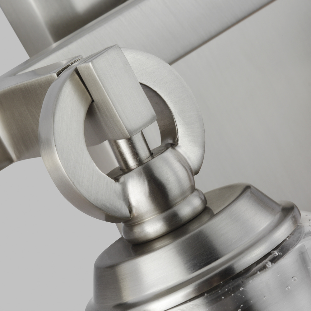The Sean Lavin Monterro four light vanity fixture in satin nickel provides abundant light for your bath vanity, while adding a layer of today's style to your interior design. Monterro features beautiful tapered glass shades and exquisite cast details, including a cast backplate, cast ring, and hook hardware that elegantly supports the shades. The Chrome version is available with two glass options; either White Opal Etched glass or Clear Seeded glass, while the Burnished Brass, Satin Nickel finish is available in Clear Seeded glass only.