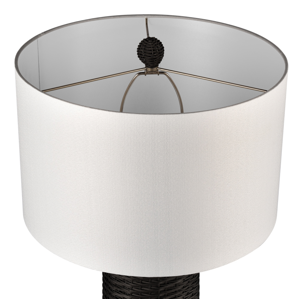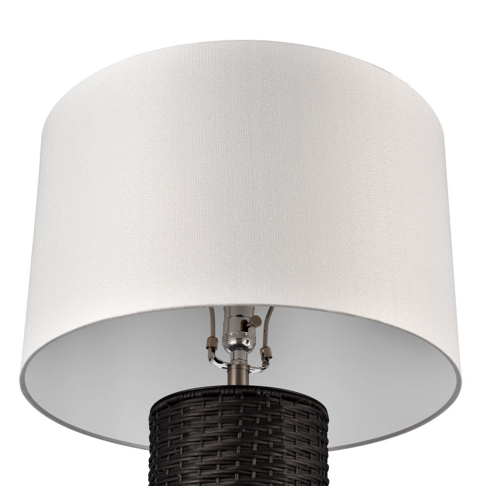 The Mulberry Lane Table Lamp features a woven, rattan cylindrical body. Its organic style notes are ideal for making a modern statement in a nature inspired bedroom or living room, while its overall vibe is kept fresh and modern with a round, hardback shade in crisp, white linen.