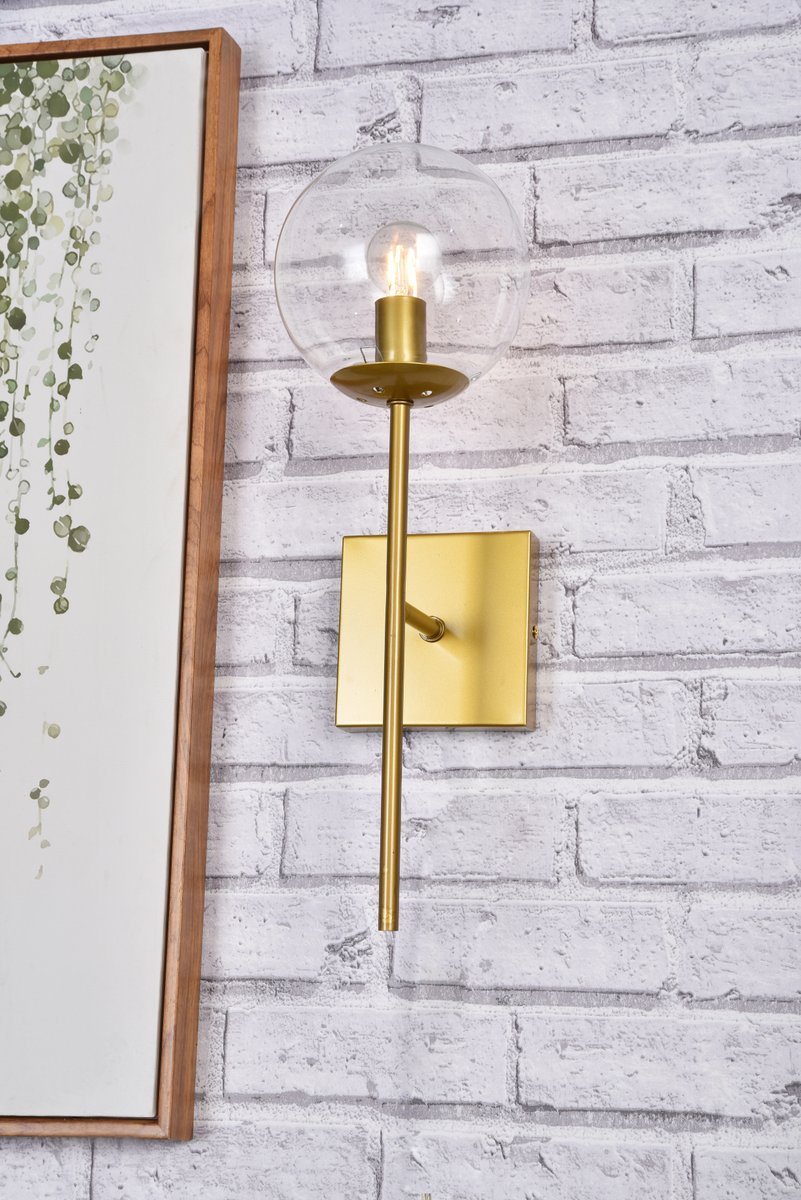 The Neri Collection wall sconce is a distinctive light that will pop in your room. The globe shade and sleek straight arm creates a clean form. The two bulbs allow themselves to brighten up the room in both directions. Available in a black and/or brass finish, and a clear or white shade, let this wall lamp illuminate your room. You can choose whether to have one or two lights. This product is dimmable and requires one or two E12 lamps. Light bulbs not included.