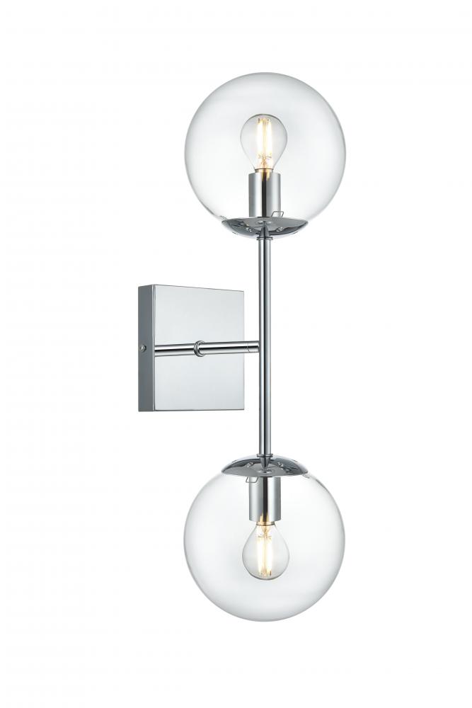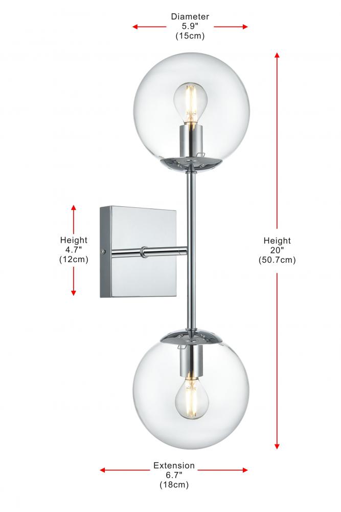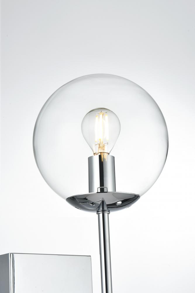 The Neri Collection wall sconce is a distinctive light that will pop in your room. The globe shade and sleek straight arm creates a clean form. The two bulbs allow themselves to brighten up the room in both directions. Available in a satin gold, chrome, black and/or brass finish, and a clear shade, let this wall lamp illuminate your room. You can choose whether to have one or two lights. This product is dimmable and requires one or two E12 lamps. Light bulbs not included.