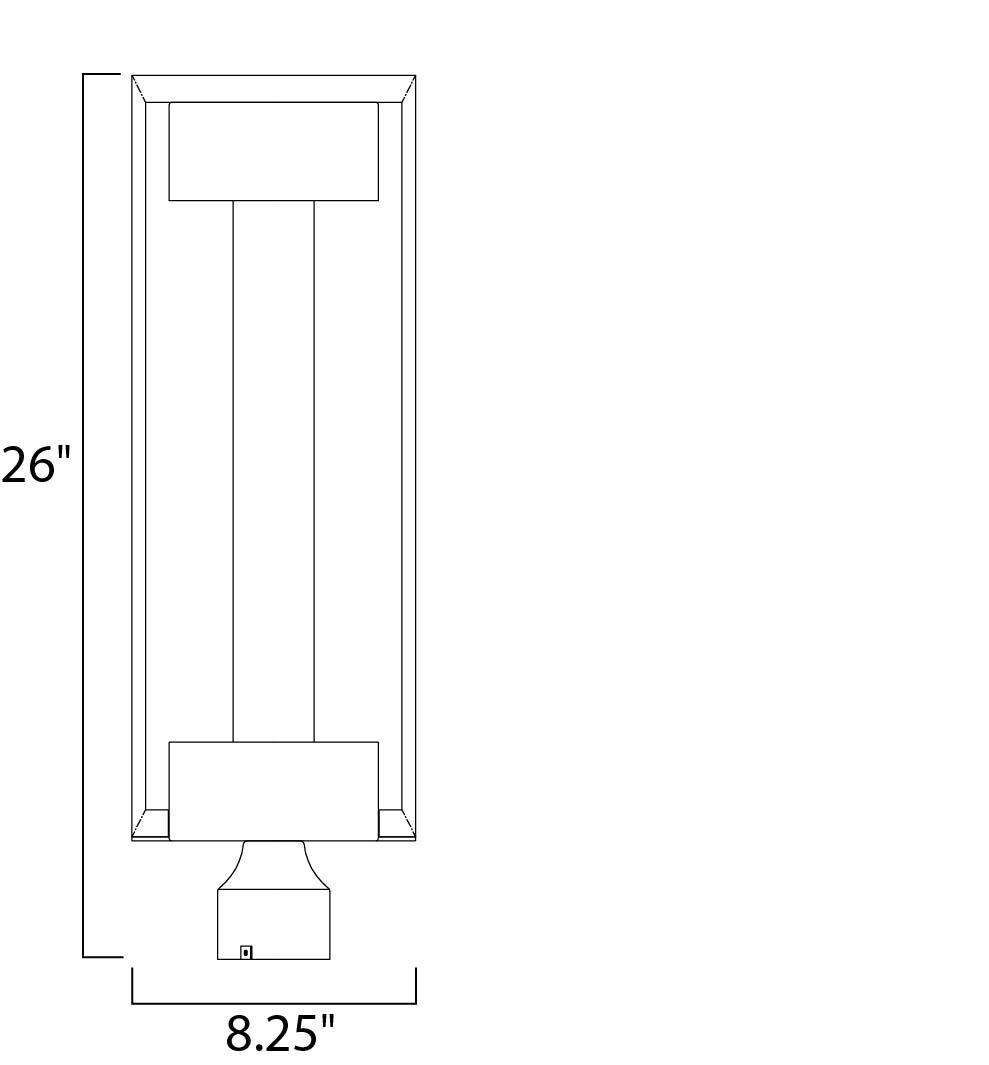 The contemporary New Age LED outdoor collection features an aluminum frame finished in Textured Ebony supporting a Clear glass cylinder. A seeded acrylic post floats down the center, illuminated by LED for the ultimate in energy savings and low maintenanc