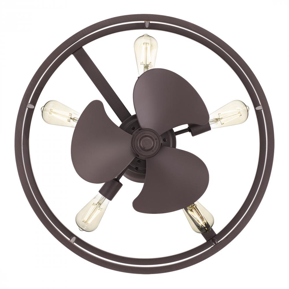The New Harbor family finds inspiration in antique fans: note the curved, blade-like flourishes at the bottom of the semi-flush design.With a reversible 3-speed motor and included remote, the New Harbor comes in a choice of Western Bronze or Brushed Nickel