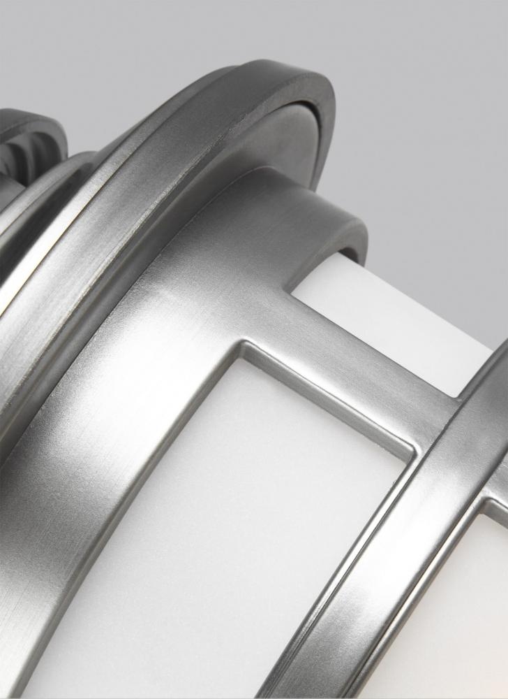 The Newport one light outdoor wall fixture in painted brushed steel enhances the beauty of your property, makes your home safer and more secure, and increases the number of pleasurable hours you spend outdoors. The nautical-inspired Newport outdoor lighting is complete with lighthouse details including a vented top and a detailed cast frame surrounding an inner Opal Etched glass inner shade. Newport is available in either Painted Silver or Antique Bronze outdoor finishes and is made of StoneStrong - a unique synthetic composition that is made tough enough to withstand harsh environmental conditions, making it a great choice for Coastal applications.