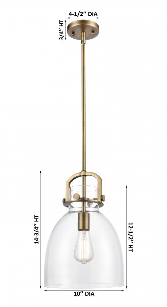 Newton Bell - 1 Light - 10 inch - Brushed Brass - Clear Shade - Mini Pendant