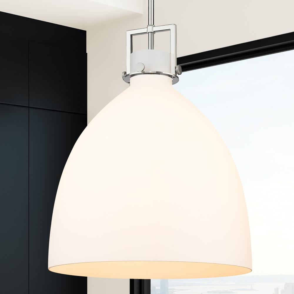 Newton Bell - 1 Light - 18 inch - Satin Nickel - White Shade - Pendant
