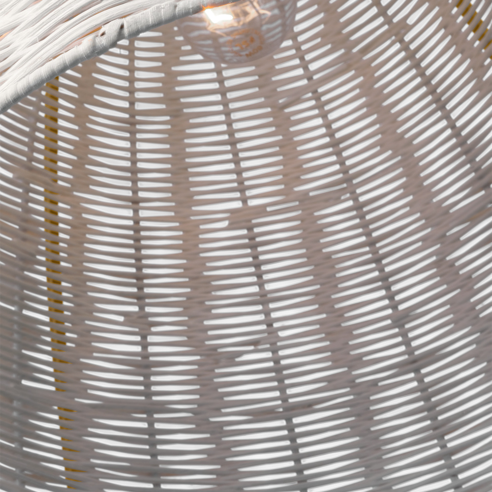Crafted with Rattan in a Chalk Wicker finish with chalk wicker rattan shade