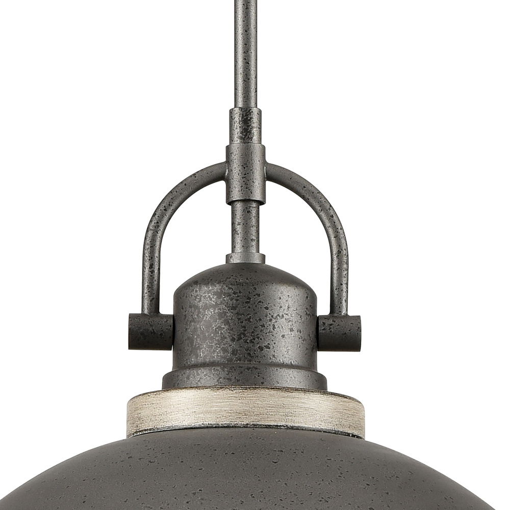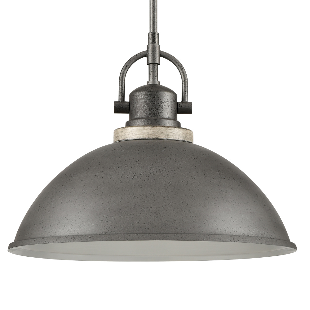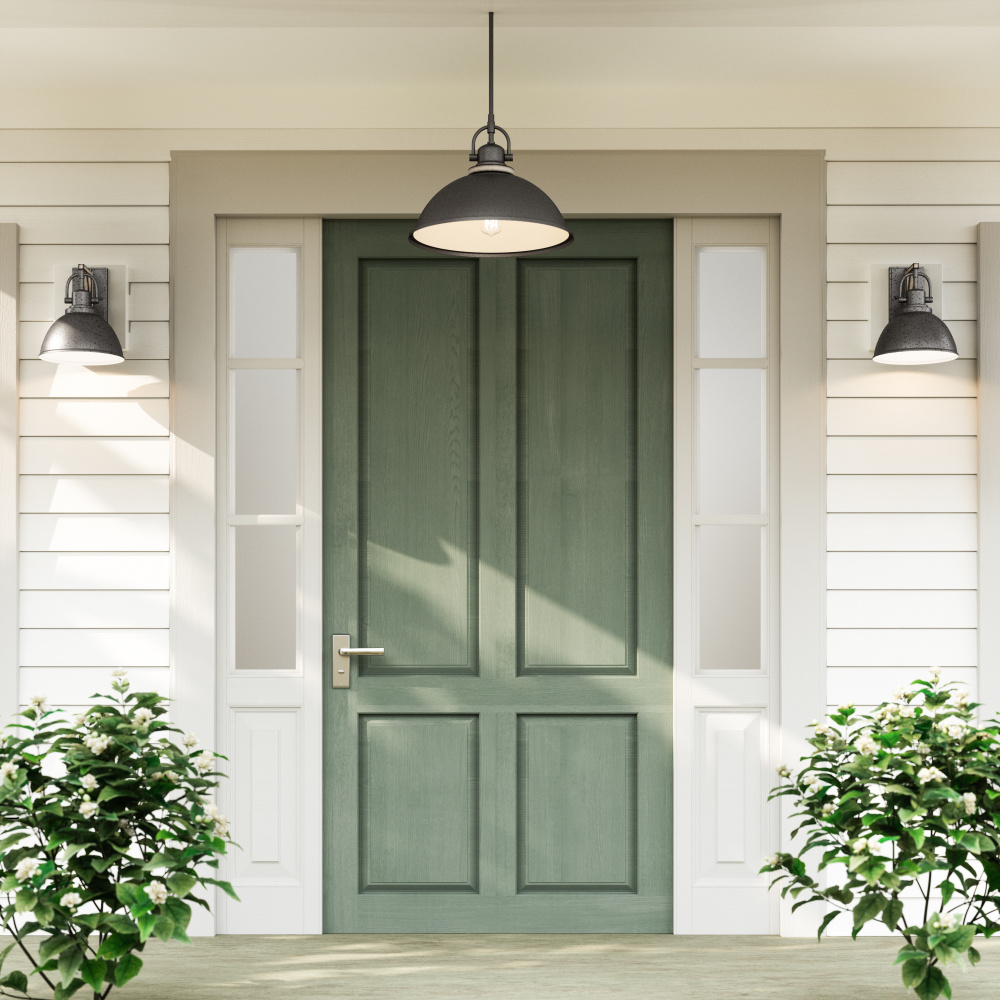The North Shore outdoor collection features curved metal shades in an iron and Palisade gray finish. Casting light down from single or multiple bulbs, the effect is industrial and chic.