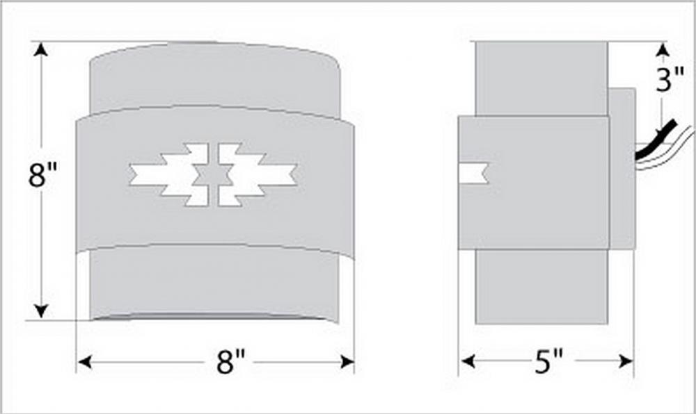 Lodge style Exterior Wall LIghts handmade in USA by Avalanche Ranch Lighting. This light features our exclusive metal wildlife art of a Pueblo Art. This Outdoor Wall Light is ideal for anyone looking to add rustic character or unique log home lighting to their home. Dimensions (inches): 9h x 8w and Takes 1 - Type B11 bulb - 60W max.