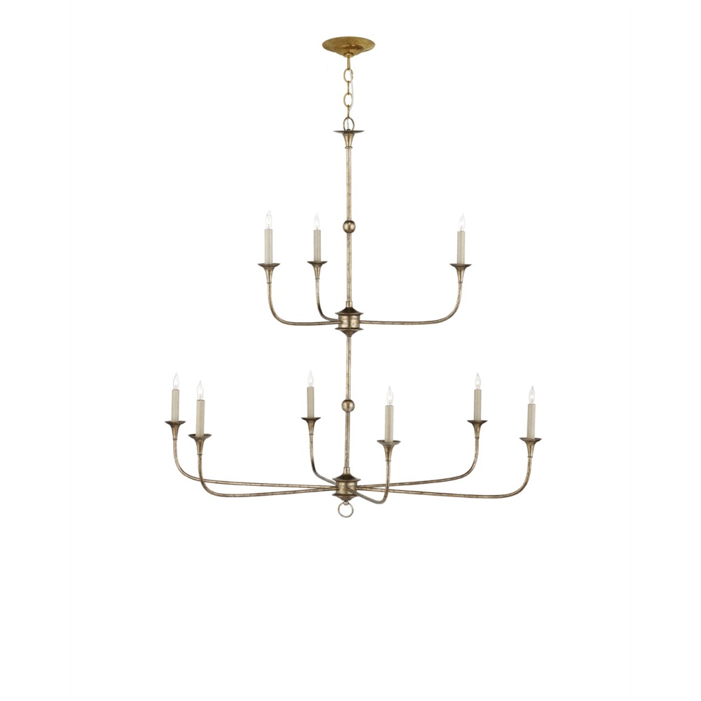 Design notes on the Nottaway Two-Tier Bronze Chandelier include long arms that stretch gracefully from small cogs and a ring that ornaments its bottom-most point. The profile of the fixture has a lovely fluidity to it, and the Pyrite bronze finish adds textural interest to the bronze chandelier. This statuesque chandelier is decidedly in the traditional design category, but its airiness allows it to function in a range of large rooms. Adjustable from 51" to 119" with use of included chain/rod kit/cable. If your space calls for a longer drop, additional chain/rods/cable is available for purchase.