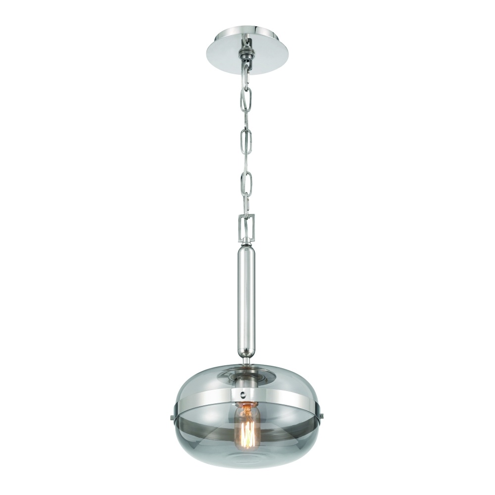 A band encircles each glass orb that beautifully reflects a warm glow from the vintage lights within. The metal support creates an inviting counterpoint to the austere design