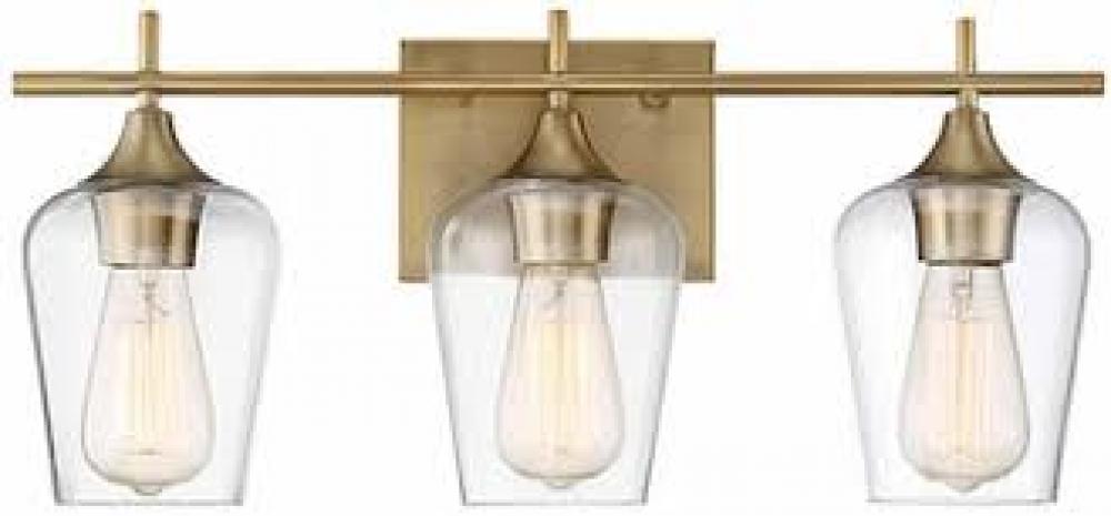 The Octave 3-light bath bar from Savoy House has understated elegance. It features large curved shades of clear glass, minimal detailing and a warm brass finish. It may be mounted as either uplight or downlight. Bath bar lights are a classic choice for illuminating vanity mirrors in bathrooms big and small. Because the bulbs are exposed, try using stylized bulbs (not included) such as Edison for a different look! The warm brass finish can be paired with brass hardware or mixed with hardware in other fixtures. Try the Octave with glam, transitional or contemporary style rooms for a chic look. When you choose a Savoy House lighting fixture, you can be certain you've selected a piece that will withstand the test of time.