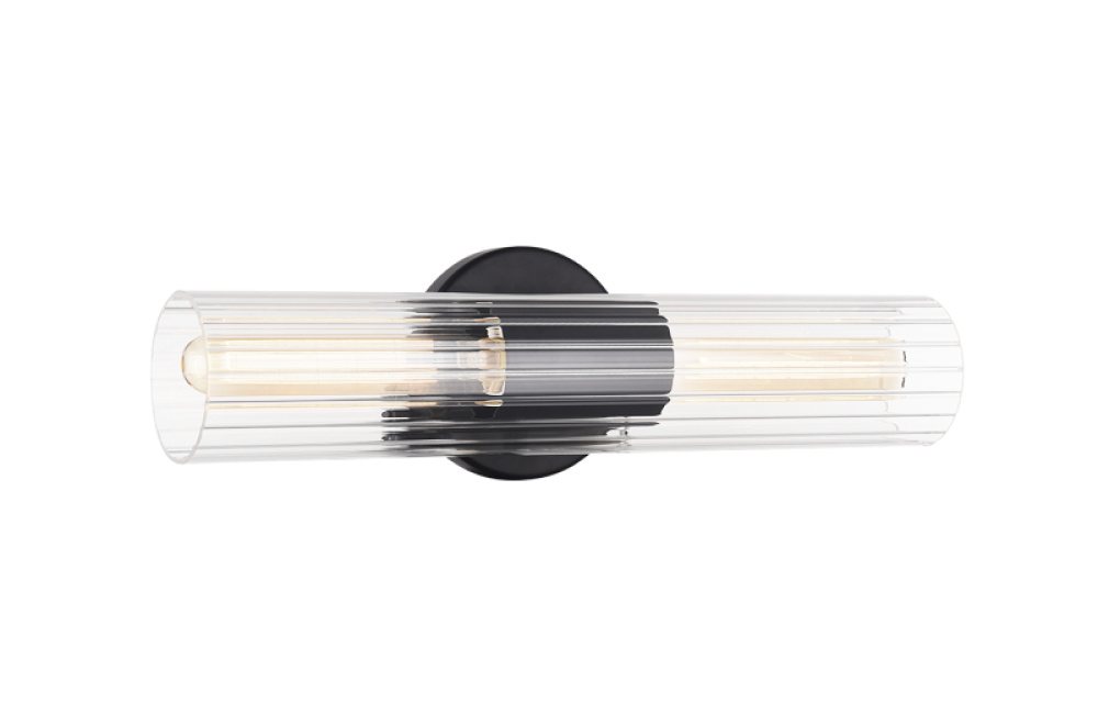 An elegant collection that features intricate detailing of clear ribbed glass. The versatility of this collection allows the fixtures to be mounted vertically and horizontally. Odette is available in 3 finishes: Aged Gold Brass, Black and Chrome as well as 2 sizes; a perfect touch to illuminate any space.