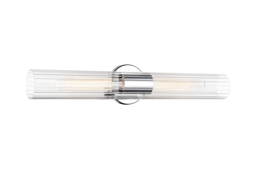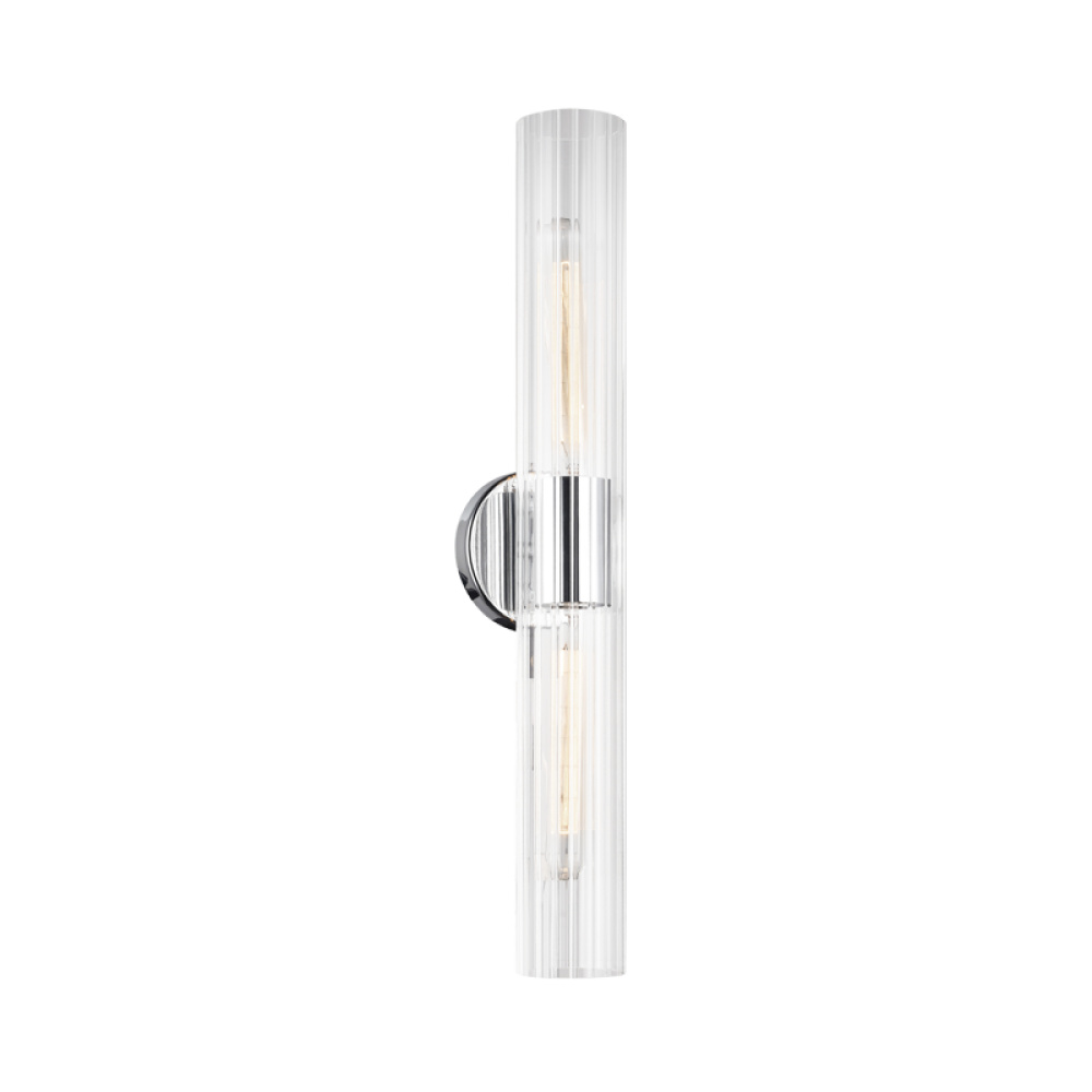 An elegant collection that features intricate detailing of clear ribbed glass. The versatility of this collection allows the fixtures to be mounted vertically and horizontally. Odette is available in 3 finishes: Aged Gold Brass, Black and Chrome as well as 2 sizes; a perfect touch to illuminate any space.