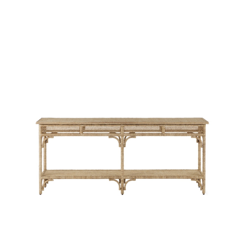 An earthy alternative to rattan and wicker, the Olisa Large Rope Console Table is covered in braided abaca rope to bring a natural elegance to a room. The dexterity required to wrap a piece of furniture so skillfully makes this tan console table special. Due to the increased size of this rope-wrapped console table, it will make a commanding statement in grandly scaled spaces, such as great rooms and statuesque foyers. The natural material in which it is wrapped also means it's fitting for coastal settings.