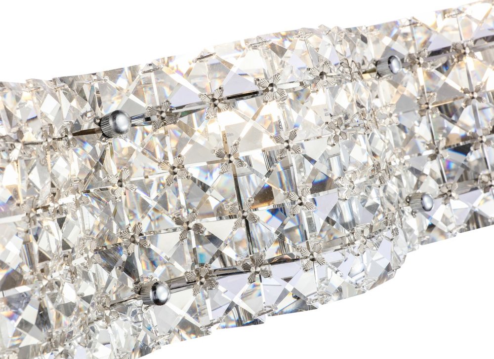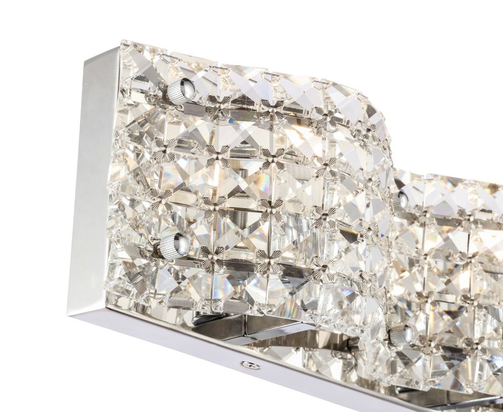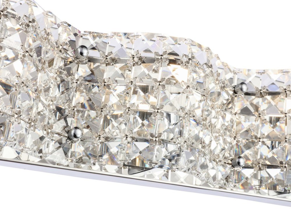 The Ollie Collection of wall lamps is a testament to the timeless beauty of crystals and lights. The gentle undulating clear crystal veil masks the coy lights that allows its lights to shine from within. The illumination creates a brilliant yet subtle glamour, and provides an ambience of alluring beauty. Available in a brass or chrome finish, this wall lamp can adorn any room in need of radiant elegance (light bulbs not included).