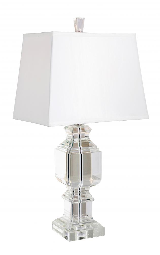 Bold curves with a modern flair set this optic crystal table lamp apart from its counterparts. Eclectic and stylish, this lamp lends itself to a contemporary or traditional setting