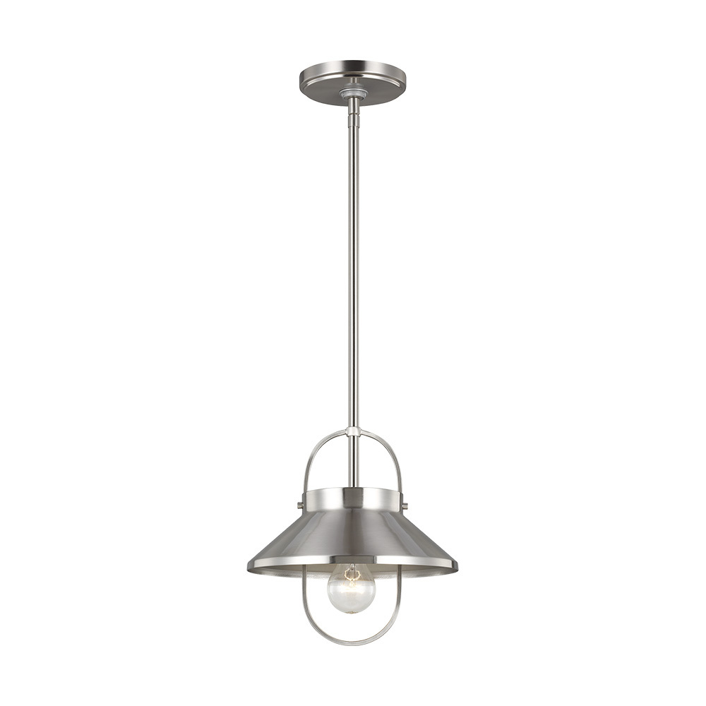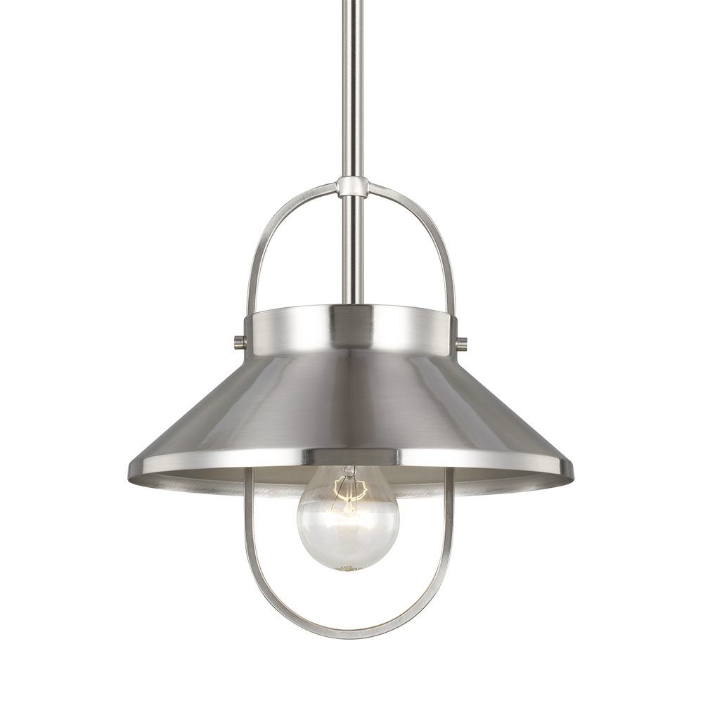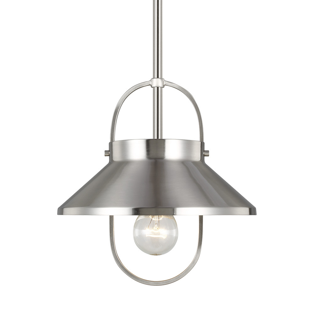 The Dormer one light indoor pendant in Brushed Nickel is the perfect way to bring an element of industrial vibe into any interior space, the simple pendant is an inspiration from converted lofts and rustic cottage dwellings. Both incandescent lamping and ENERGY STAR-qualified LED lamping are available; all fixtures are California Title 24 compliant.
