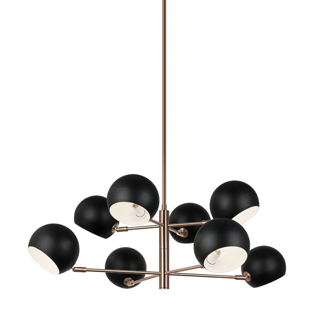 Combining elegance with a modern touch, the Orb family will make a stunning focal point for many design aspects. Finishes are Aged Gold Brass paired with Matte Black or Matte White shades with a white interior.