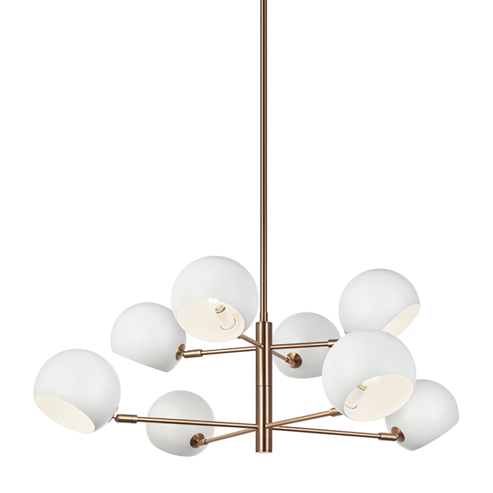 Combining elegance with a modern touch, the Orb family will make a stunning focal point for many design aspects. Finishes are Aged Gold Brass paired with Matte Black or Matte White shades with a white interior.