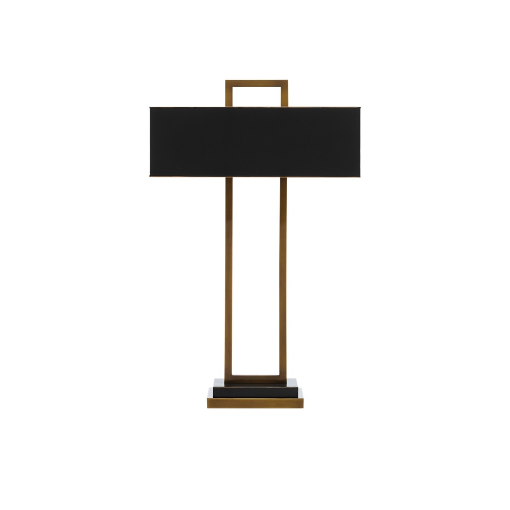 The Otto Table Lamp is a study in rectangles with an intermingling of antique brass and oil-rubbed bronze finishes on the metal. Special features of the geometrically rich black lamp include its tailored profile and how carefully our designers chose the placement of the metal shade to form a counterpoint to the ribs of metal it intersects.