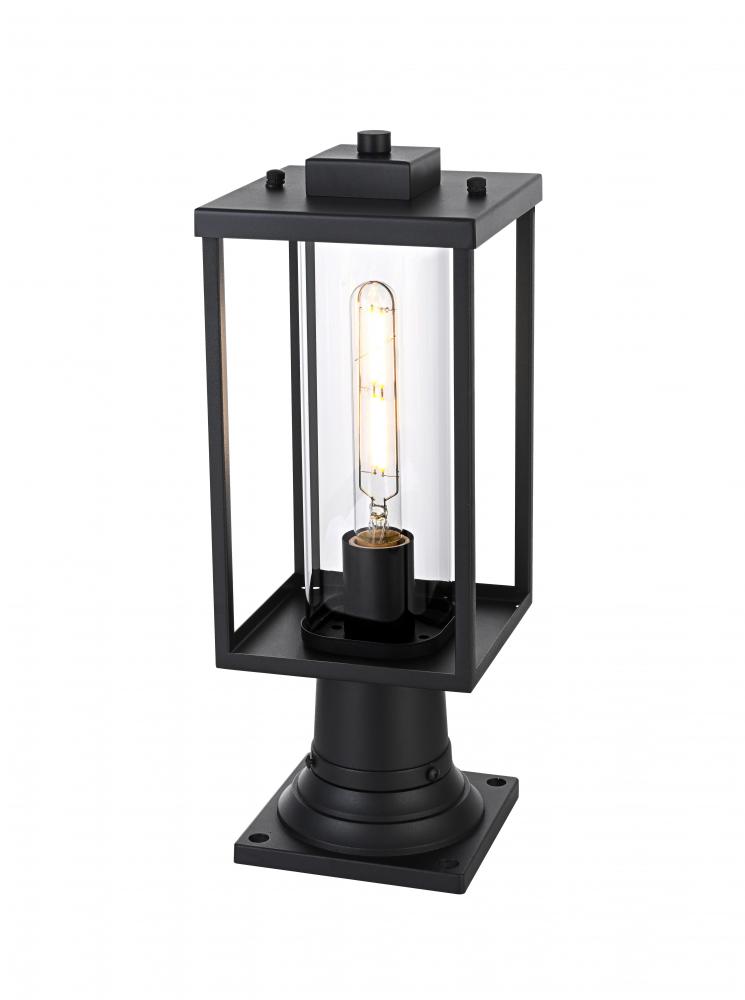 Introduce timeless charm and functionality to your outdoor space with this modern post light. Crafted from durable iron and paired with a sleek glass cylinder, this post light brings clean lines and a minimalist vibe to your exterior decor. It is thoughtfully designed to create a warm, ambient glow, ideal for front porches, patios, and entryways. The sturdy iron frame gives it a robust look, while the clear glass ensures the perfect display of your chosen bulb, allowing for a soft, inviting illumination. Built with practicality in mind, this fixture is as stylish as it is practical, perfect for complementing a range of exterior styles.