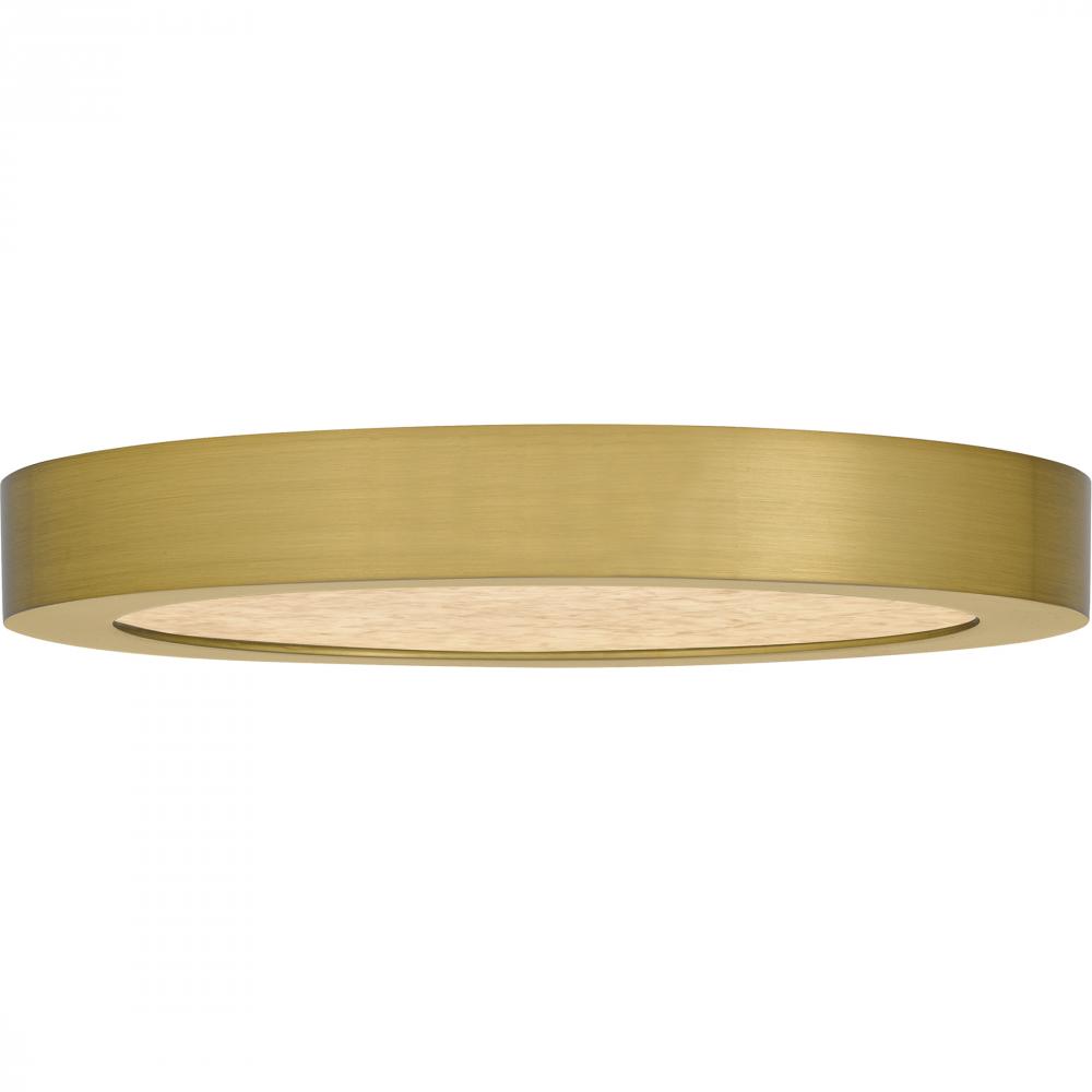 The Outskirts flush mount is a versatile lighting fixture, ideal for a range of room applications. Available in multiple sizes, you can select the brushed gold finish with a white alabaster acrylic shade for a refined look, or the earth black finish with a