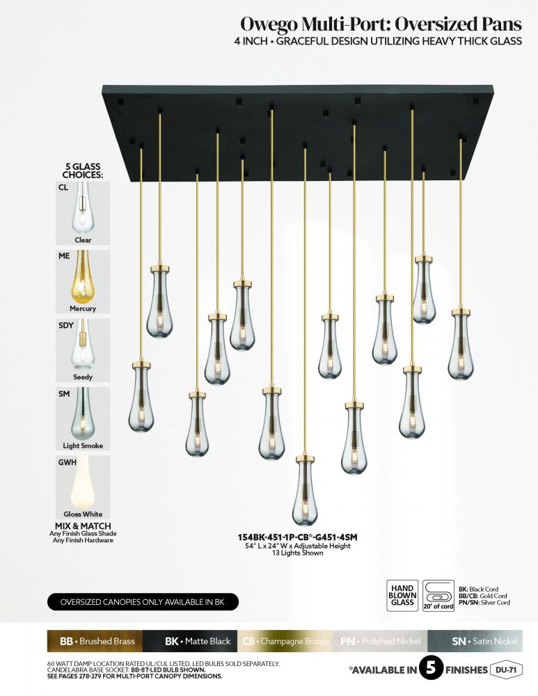 Owego - 13 Light - 54 inch - Brushed Brass - Clear Shade - Multi Pendant