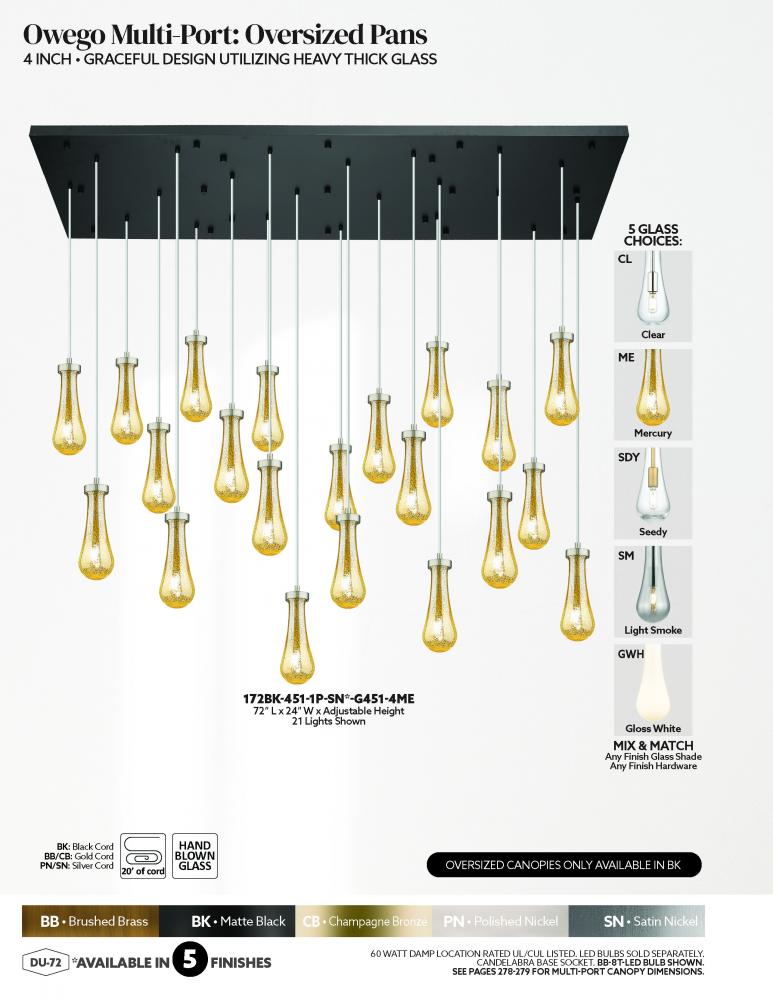 The organic teardrop shape of the Owego pendant is artfully hung from a tiered metal frame that is complemented by a single filament bulb. These pendants look great as individual fixtures but make a grand statement when paired with our multi-port hanging