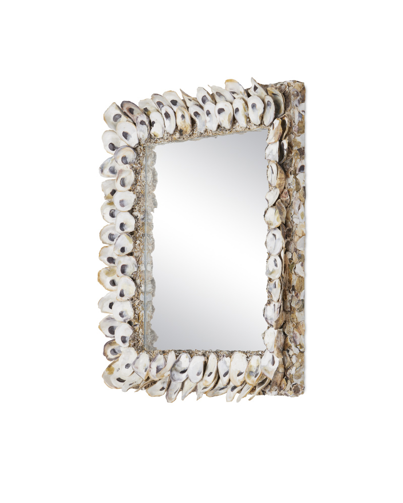 Dancing along the edge of the Oyster Shell Mirror are the highly recognizable half shells of this gastronomic fruit of the sea. The rounded edges of the shells provide this decorative mirror with layers of scalloped texture. At 20 inches square, the Oyster Shell Mirror is a nautical accent that brings the ocean indoors whether the interiors make up a beachfront retreat or a home on the ocean.