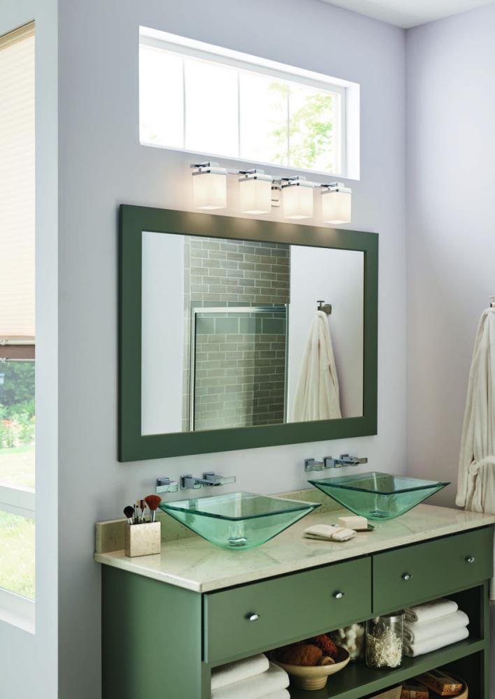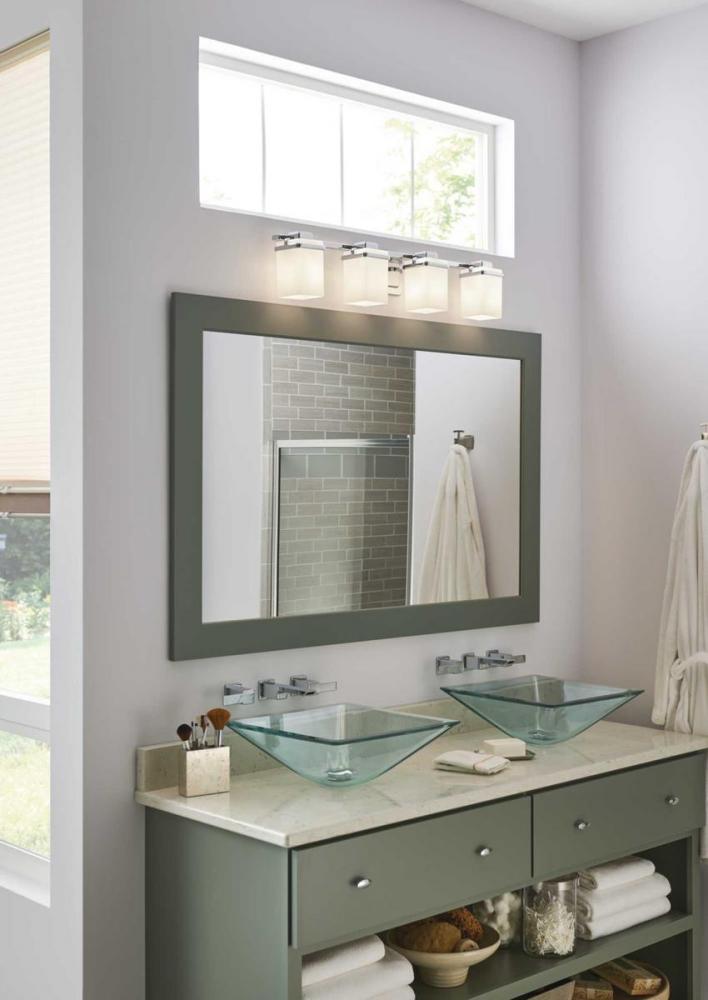 Ideal for a bathroom;Perfect for coastal and modern style settings;Crisp polished chrome finish;Elegant etched glass shades with painted white inside;Mount the light fixture facing up or down;Use 4 medium base bulbs that are sold separately (100 W max - LE