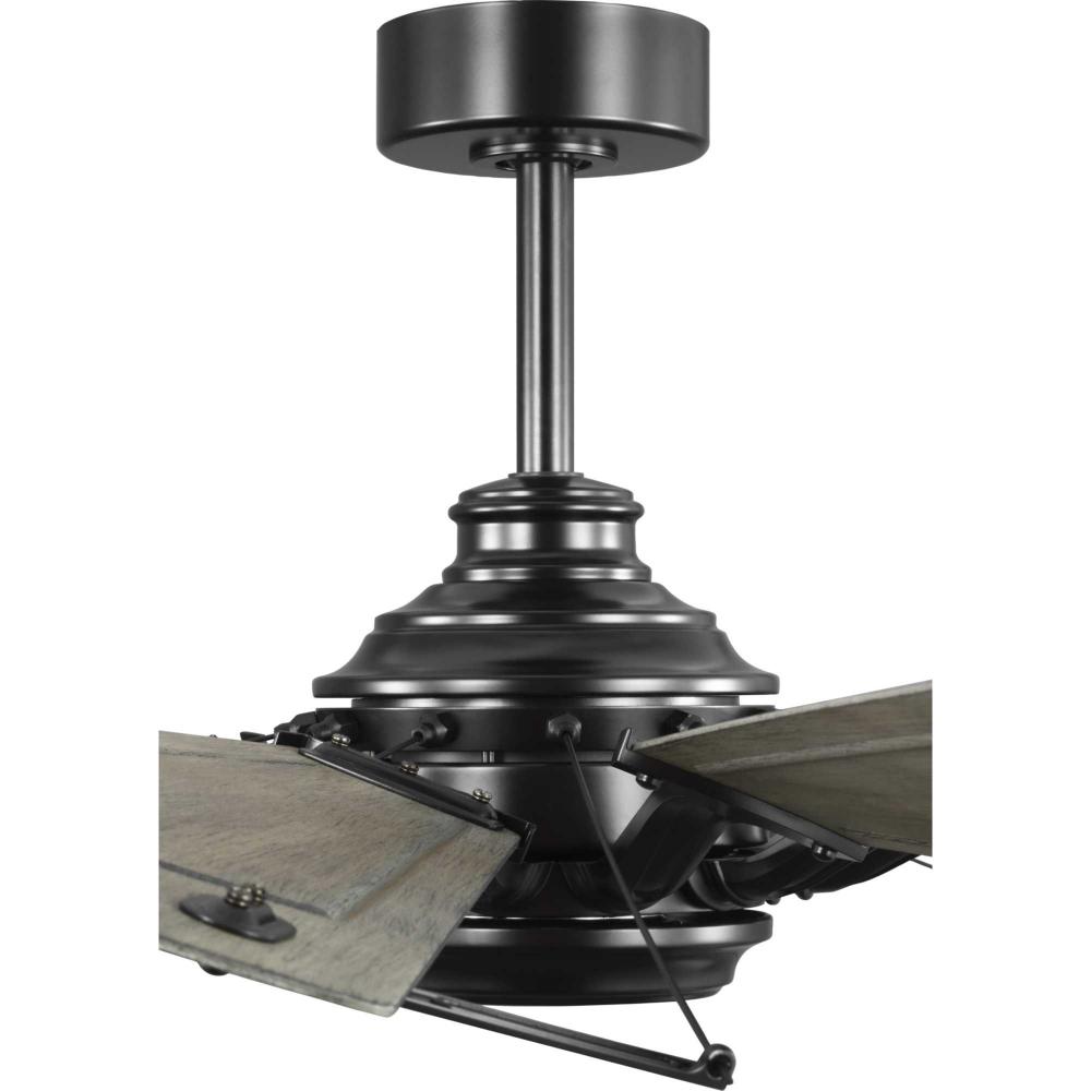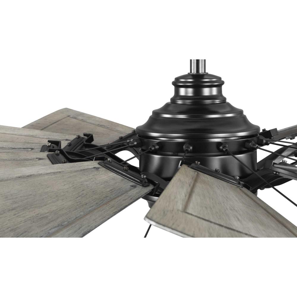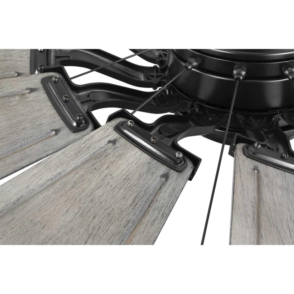 Relax under the refreshing breeze of the Springer Collection 60-Inch Windmill Ceiling Fan. Its large scale and windmill-style blades make it ideal for any great room, bedroom, living room, or bonus room in modern farmhouse, rustic, and coastal-style settings. Its twelve sweeping blades are coated in Distressed Charcoal finish with a Matte Black housing for a rustic flair. Its cULus damp rating makes this lovely fan ideal for use inside or in outdoor covered areas. A 6 speed full-function remote control and wall bracket are included. .