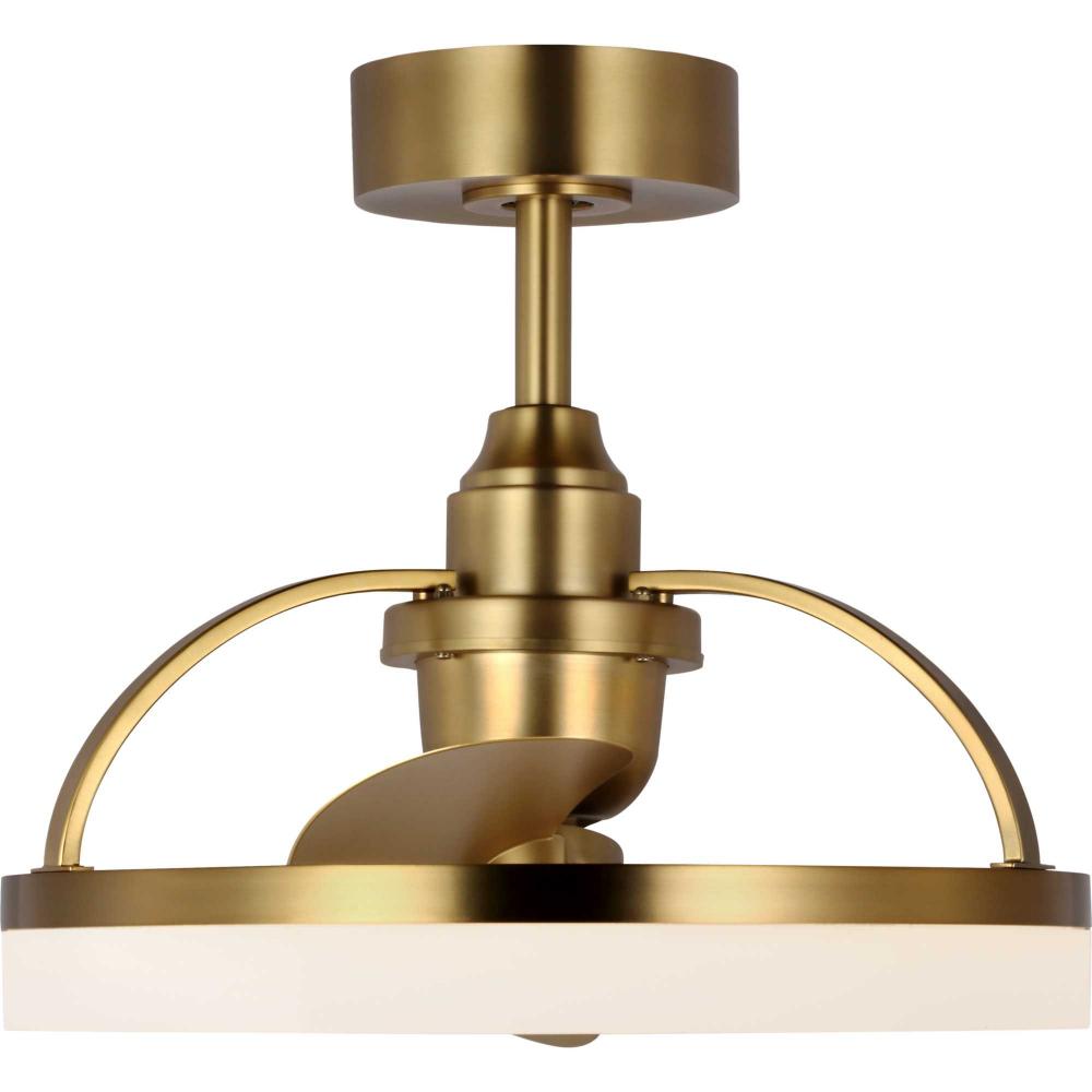 Crafted from swirling bands of brushed bronze and creamy polished acrylic, the 19.56-inch Shear LED fandelier is a masterpiece that elevates both form and function to new heights. A trio of Gold fan blades are powered by a quiet, oscillating DC motor that effortlessly distributes air in a 36-degree rotation throughout indoor and covered outdoor rooms. Innovative, linear dimmable LEDs softly illuminate the surrounding space. A full-function remote control and wall bracket are included. This fan is part of the new Oscillarâ„¢ Collection of ceiling fandeliers, featuring rings of integrated LED illumination and a trio of blades powered by a silent oscillating DC motor that features a 360-degree rotation and six speeds, delivering maximum air distribution in every direction throughout a room.