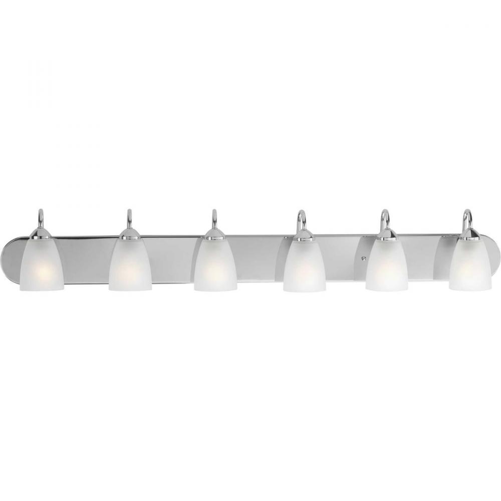 Ideal for a bathroom or great room;Perfect for traditional and transitional style settings;Crisp polished chrome finish;Elegant etched glass shades;Mount the light fixture facing up or down;Use 6 medium base bulbs that are sold separately (100 W max - LED/
