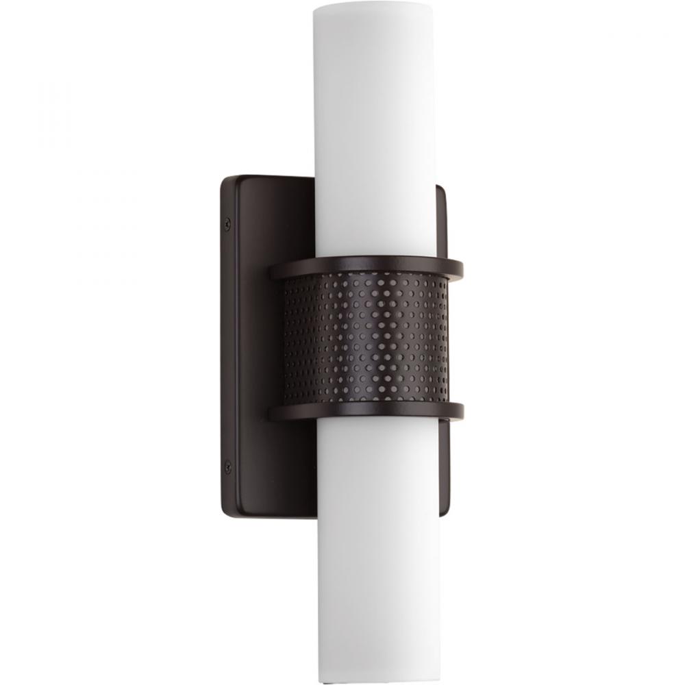 Tubular Design Pairs With A Geometric Back Plate And Mesh Accents.;Can Be Mounted Horizontally Or Vertically.;Circular Etched Opal Glass Contains An Integrated Led Source.;737 Lumens.
