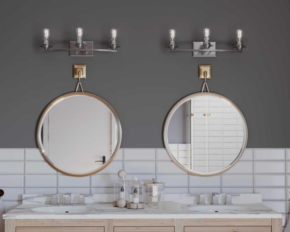 Ideal for a bathroom;Perfect for farmhouse and urban industrial style settings;Beautiful brushed nickel finish;Glass accessory shades available in clear or frosted seeded finishes;Mount the light fixture facing up or down;Use 3 medium base bulbs that are s