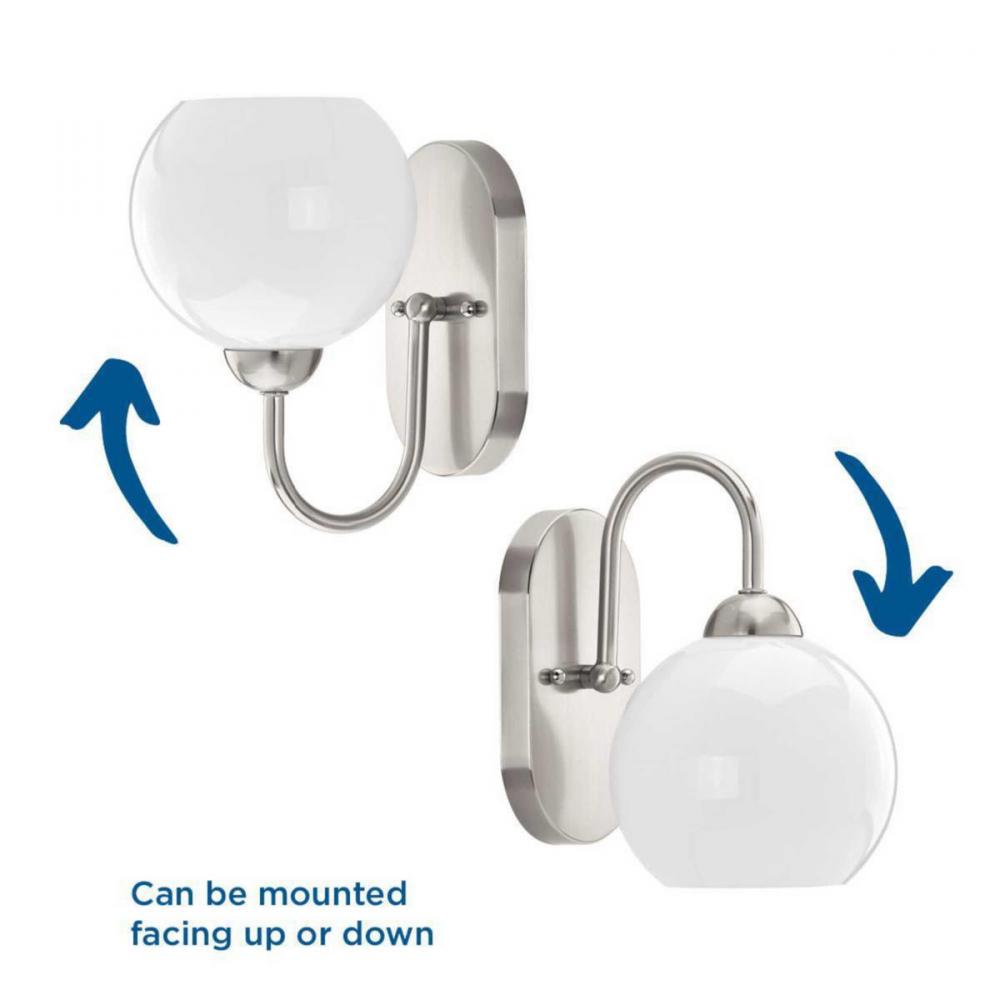 Ideal for a bathroom, hallway, or foyer;Perfect for mid-century modern and modern style settings;Beautiful brushed nickel finish;Elegant opal glass shade;Mount the light fixture facing up or down;Use 1 medium base bulb that is sold separately (75 W max - L