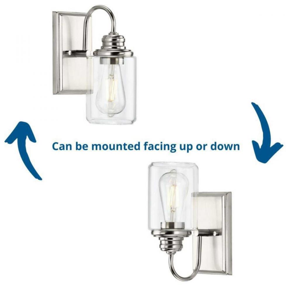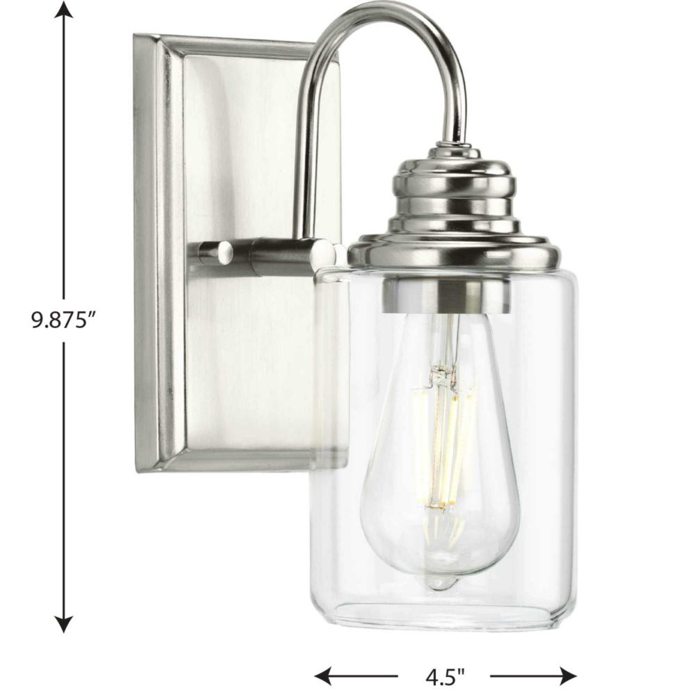 Application: Enjoy delightful charming details with the Aiken Collection 1-Light Brushed Nickel Clear Glass Vintage Bath Vanity Light ideal for any entryway, hallway, foyer, bedroom, sitting room, living room, or bathroom.;Styles: Perfect for farmhouse, co