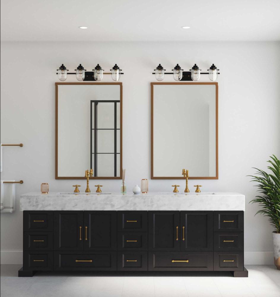 The nostalgic Northlake Collection combines classic design influences with nautical inspiration. Finished in matte black, the rounded diffuser and layered caps are reminiscent of floating buoys and weekends on a mountain lake. Clear glass shades cast a pleasing glow in bathrooms and powder rooms in coastal and transitional settings. This versatile fixture can be mounted up or down, increasing its design flexibility. It is cULus damp rated and has a one-year warranty to guarantee your complete satisfaction. Progress Lighting products offer exceptional quality, reliability, and functionality. .