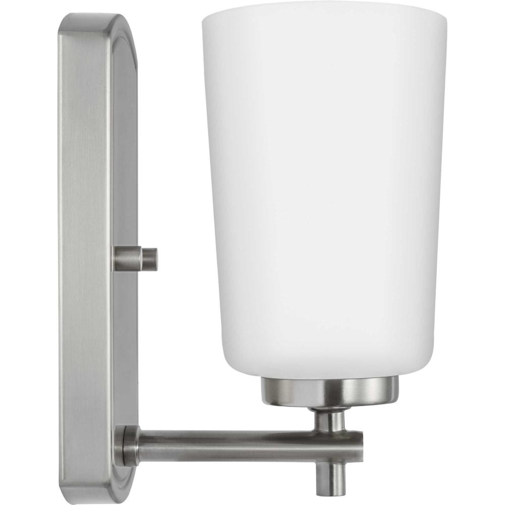 Fundamentally modern but with a traditional twist, the Adley vanity light combines an opal glass shade with a curved edge backplate and a simple, straight bar finished in soft brushed nickel. This light is an elegant choice for illuminating new traditional and transitional settings.