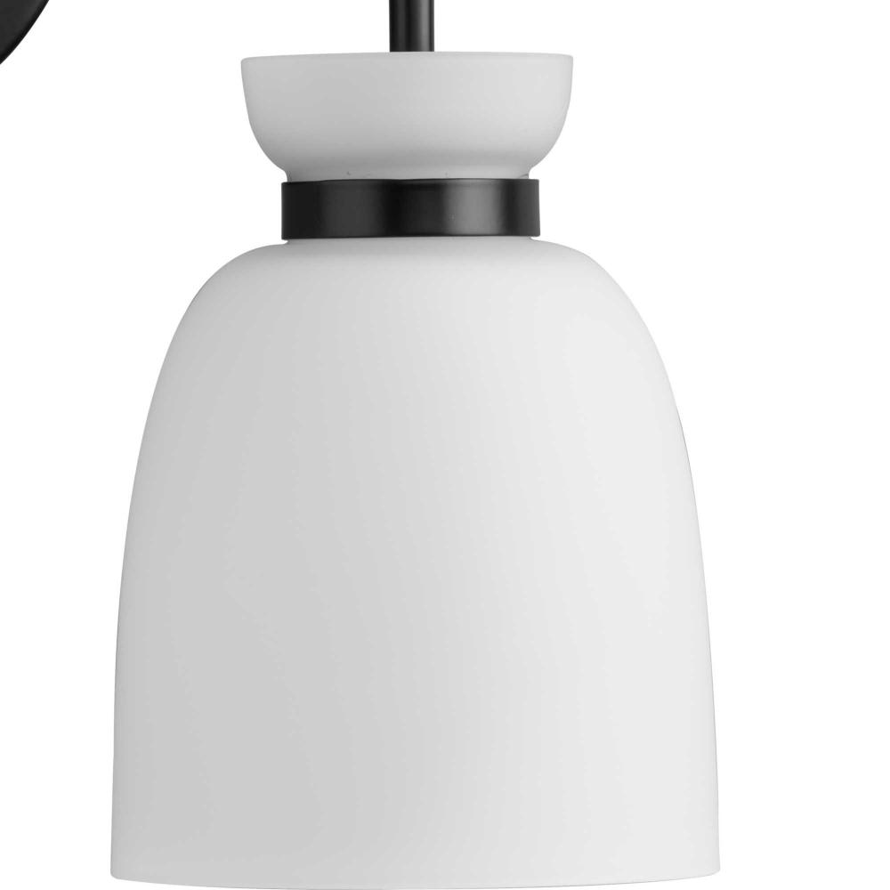 The Lexie Four-Light Vanity Light is full of spunk with a fresh new style for todays home. A slender minimalist frame finished in Matte Black supports opal glass shades with a distinctive cinched metallic collar.The versatile fixture can be mounted facing up or down, offering the perfect amount of illumination to the room.