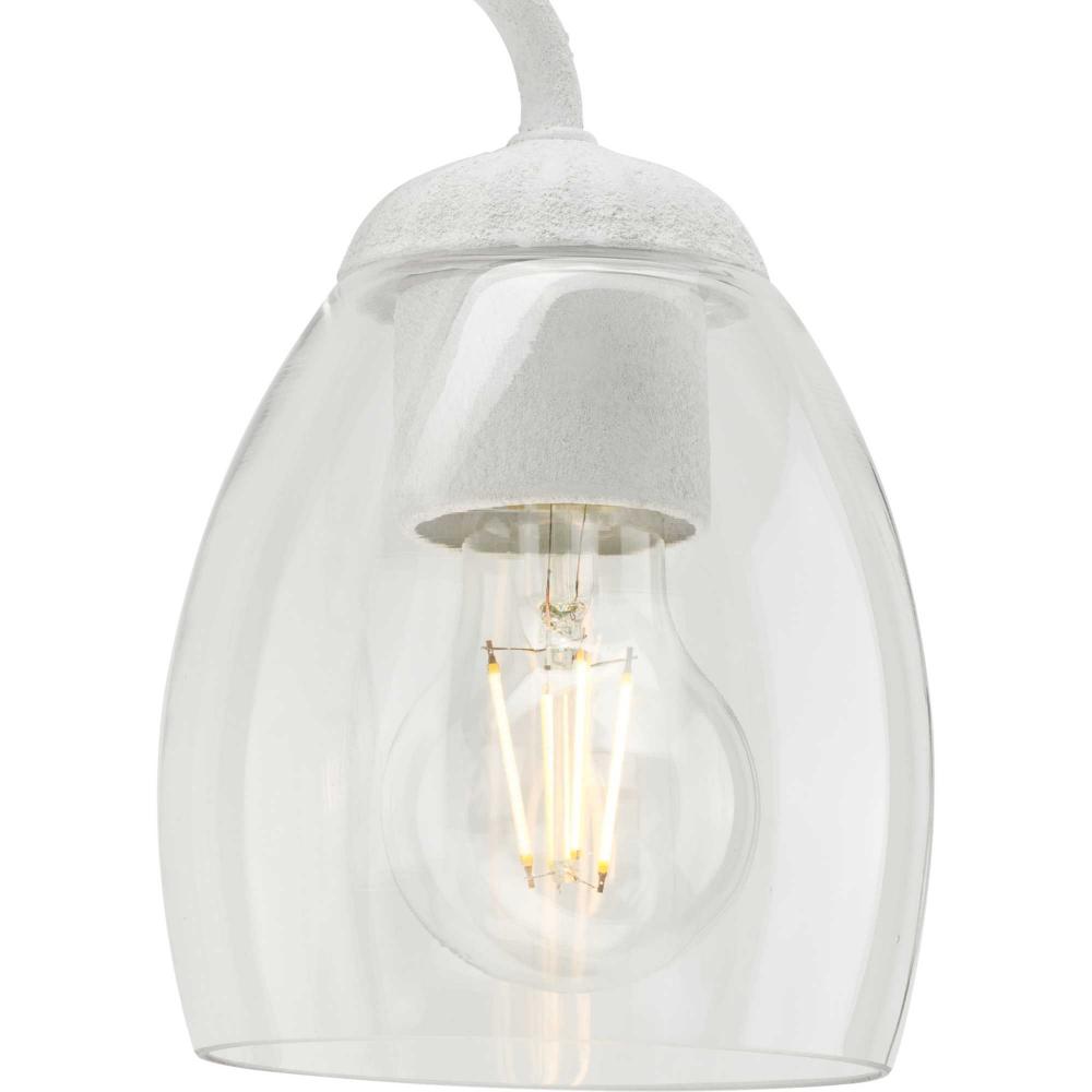 Focused light is cast through clear glass bell shades