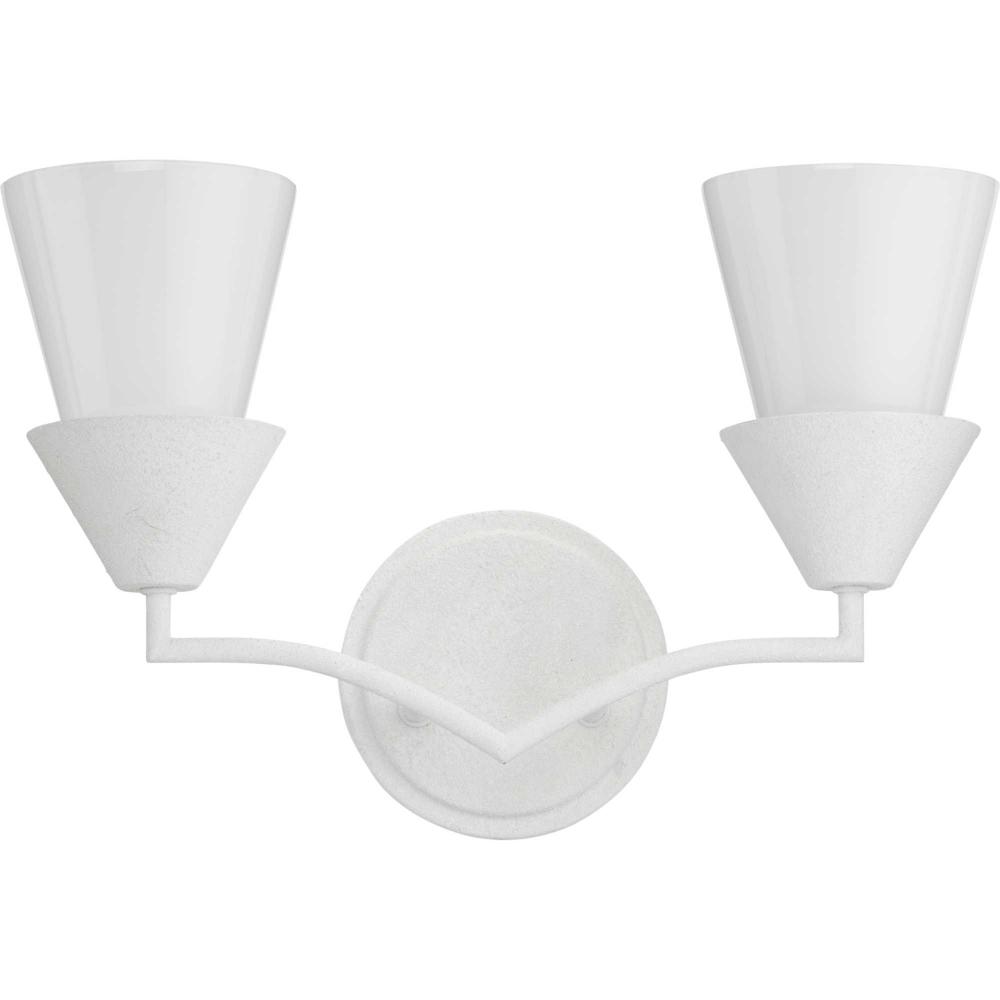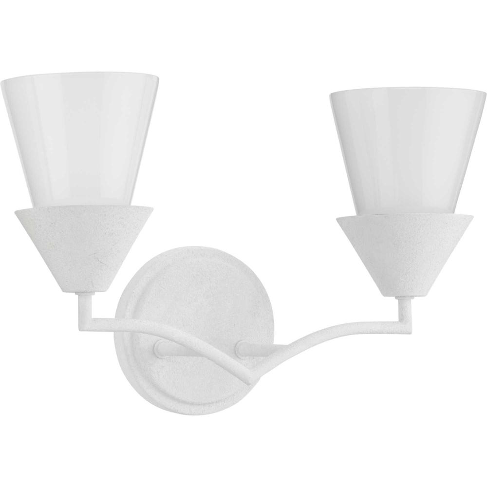 The Pinellas Vanity Light gets to the point with a modern expression of a timeless form. The signature dual conical motif coated in a beautiful White Plaster finish has the elements artfully nested together to provide a pleasing diffusion of light. This fixture is part of the Progress Lighting Design Series, a lighting collection offering fashionable styles and luxury lighting for the home.